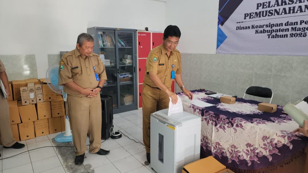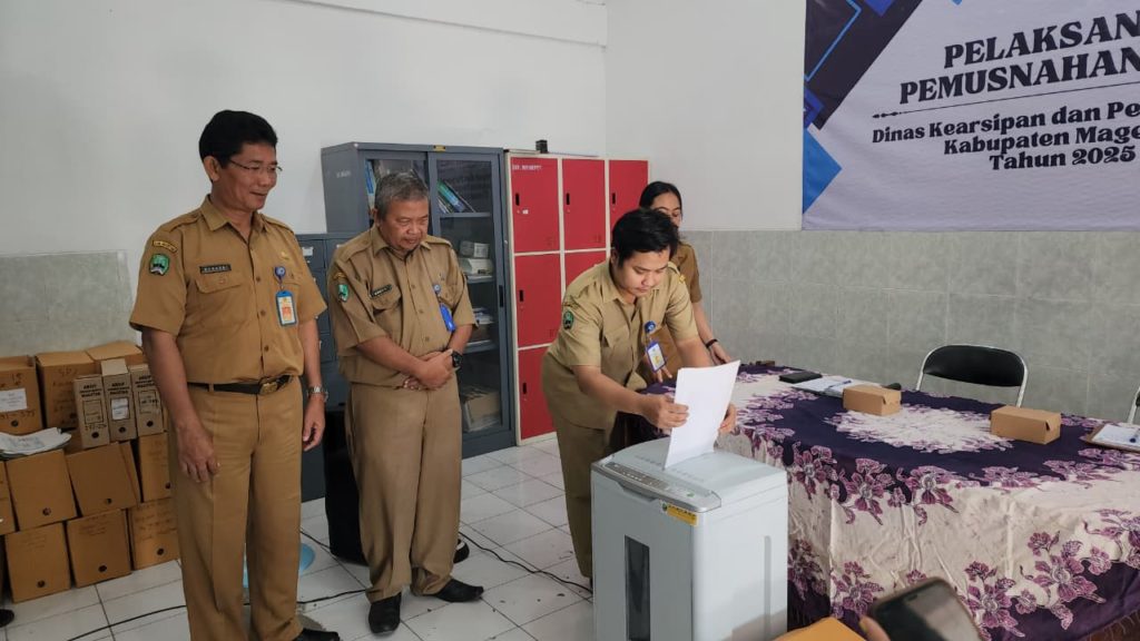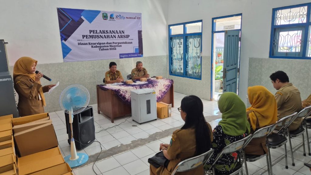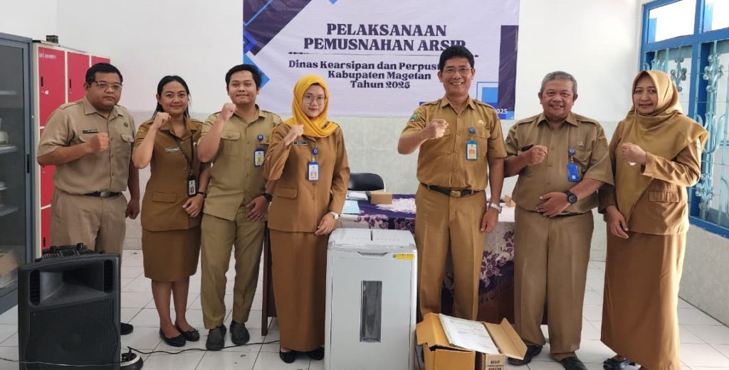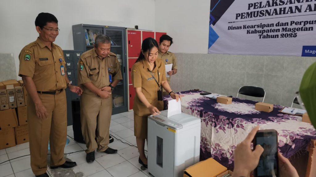 Menindaklanjuti Keputusan Bupati Magetan Nomor 000.5.6.2/20/Kept/403.118/2025 tanggal 16 September 2025 tentang Penetapan Pemusnahan Arsip sebanyak 797 berkas pada Dinas Kearsipan dan Perpustakaan Kab. Magetan. Pada Selasa 14 Oktober 2025 bertempat di Depo Arsip Kabupaten Magetan, Tim Panitia dari Dinas Kearsipan dan Perpustakaan Kab. Magetan (Arpus) melaksanakan giat pemusnahan Arsip untuk tahun 2025. Agenda rutin tahunan tersebut merupakan salah satu bagian dari tata Kelola kearsipan dalam rangka mencapai tertib arsip di Kabupaten Magetan. Metode yang digunakan dalam pemusnahan arsip tersebut dengan cara dicacah menjadi bagian-bagian kecil sehingga fisik dan informasi arsip musnah dan tidak dapat dikenali.