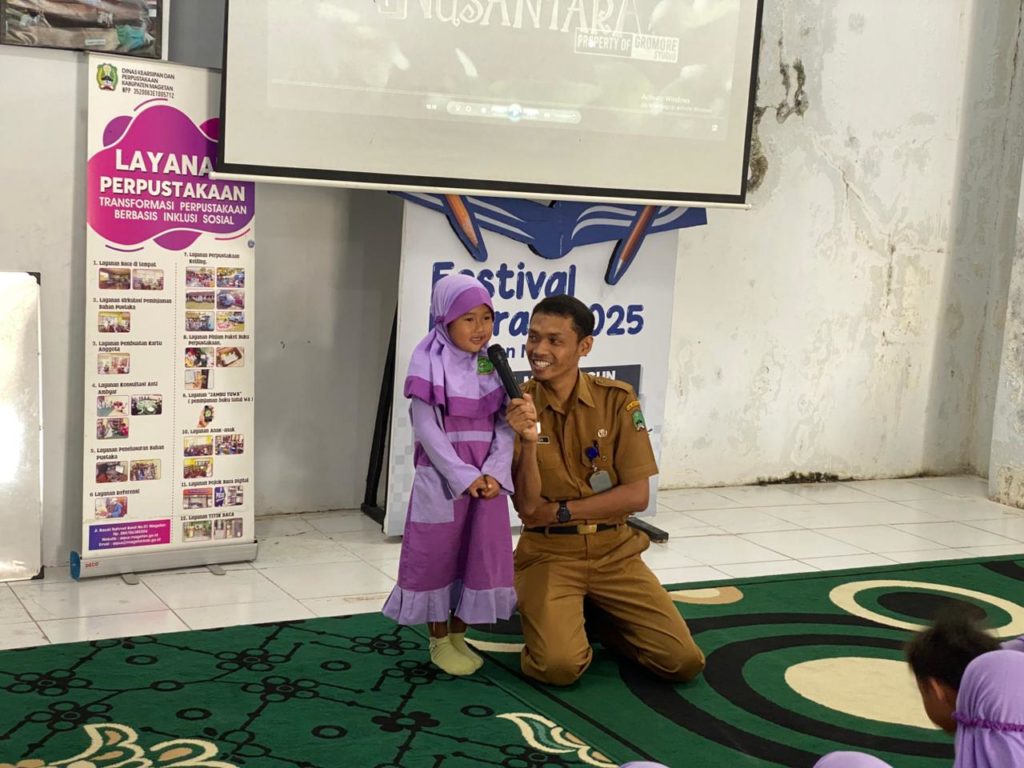Menumbuh kembangkan kegemaran membaca sejak usia dini diyakini banyak pihak merupakan prinsip dasar untuk meningkatkan literasi bangsa. Beragam cara yang menyenangkan dapat dilakukan untuk membangun budaya gemar membaca tersebut pada anak-anak. Wisata literasi sebagai salah satu layanan unggulan Dinas Arpus Kab. Magetan, diharapkan dapat menjadi pilar ekosistem budaya gemar membaca tersebut. Dalam wisata literasi, para peserta yang umumnya adalah anak-anak sekolah tidak hanya berkunjung ke Perpustakaan untuk membaca buku, namun juga di isi dengan kegiatan-kegiatan literasi dalam rangka menarik minat baca pada anak. Target sasaran layanan wisata literasi ini memang lebih difokuskan pada anak-anak sekolah jenjang TK sampai Sekolah Dasar (SD), meski tidak menutup kemungkinan bagi tingkatan sekolah di atasnya.