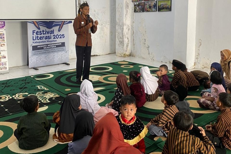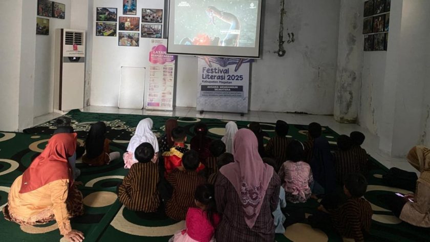Tak ingin ketinggalan dengan lembaga sekolah lainnya, hari ini Selasa 21 April 2026 rombongan 23 siswa dari KB Ar Rohman 2 Magetan didampingi 2 orang Guru, berkunjung ke Perpustakaan Umum Magetan. Disambut oleh Kak Ruly, kegiatan wisata literasi dimulai dari jam 08.00 WIB dengan pengenalan sederhana tentang ruang-ruang dan fasilitas yang tersedia di Perpustakaan Umum Magetan. Masih di tempat yang sama, kegiatan berlanjut dengan pemutaran film dongeng Timun Mas.