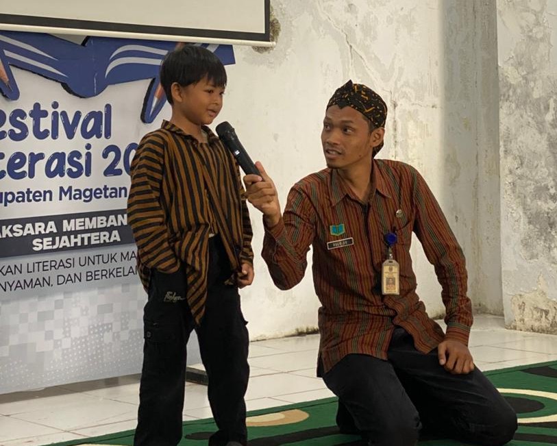 Kegiatan literasi di ruang kreativitas diakhiri dengan sesi dialog interaktif antara kak Ruly dengan para peserta. Tujuannya melatih anak-anak belajar memahami dari apa yang sudah dilihat ataupun dibaca. Dalam dialog interaktif tersebut, anak-anak diminta maju ke depan untuk menceritakan kembali film dongeng Timun Mas. Melalui kegiatan ini, secara tidak langsung dapat menumbuhkan kepercayaan diri anak-anak, dan berani berbicara di depan umum.