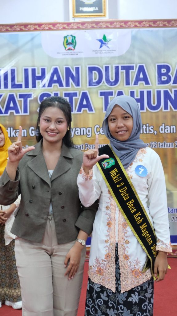 Gelaran pemilihan Duta Baca Kab. Magetan Tahun 2026 Tingkat SLTA telah mencapai tahapan akhir. Ditandai dengan pelaksanaan grand final Duta Baca 2026 pada hari ini, Selasa 21 April 2026 bertempat di Graha Pusat Literasi Magetan. Secara berurutan, ke-10 grand finalis saling adu kemampuan sepanjang rangkaian sesi grand final berlangsung.