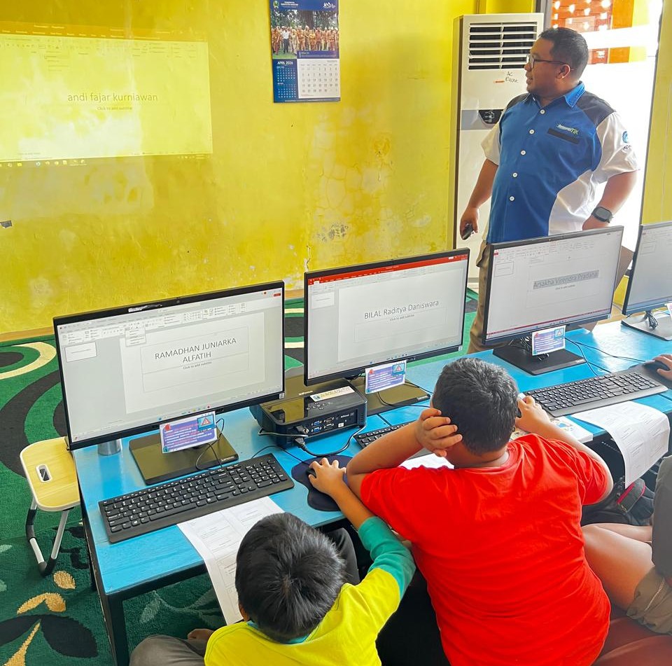 Kegiatan after school di akhir pekan yakni kelas komputer pada Sabtu 25 April 2026 telah mencapai pertemuan ke-6. Dimulai dari jam 10.00 – 12.00 WIB, kelas ini diikuti oleh peserta yang tergabung dalam bacth 1 sebanyak 8 anak. Di fasilitasi 3 orang pengajar dari relawan TIK Kab. Magetan, materi yang diajarkan pada pertemuan tersebut adalah pengenalan aplikasi power point (ppt). Peserta diajarkan dan diberi tugas membuat slide power point sederhana tentang biografi atau profil diri masing-masing.