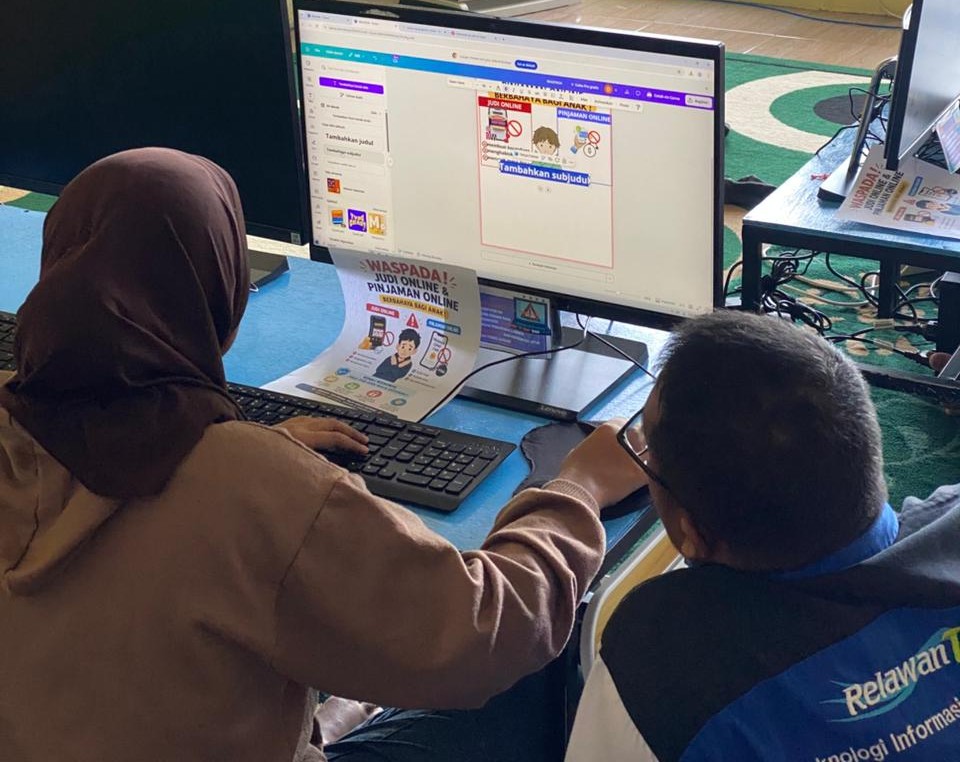 Berlanjut pada siang harinya, mulai jam 13.00 – 15.00 WIB kelas komputer untuk peserta difabel diikuti 2 orang peserta. Pada pertemuan kali ini, materi yang diajarkan yaitu membuat design poster larangan judi online dan pinjaman online menggunakan aplikasi canva. (nas)